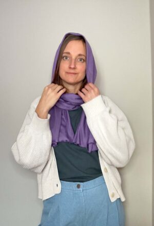 Zum Trocknen den Stoff möglichst feucht aufhängen und glatt streichen, dann brauchst du kein Bügeleisen. Sanftes Bügeln ist von links möglich. Nicht in den Trockner geben!